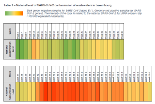 This report 39 presents the results of SARS-CoV-2 contamination of wastewater at the entrance of the 13 wastewater treatment plants (WWTPs) during the first week of 2021. Two sampling dates were performed during this week, excepted for Hespérange...